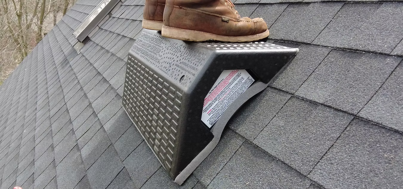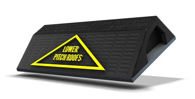 We craft a uniquely blended foam and securely bind it to the wedge. When weight and friction are applied, the foam base creates a strong bond with asphalt shingles, ensuring stability. Each Pitch Hopper®is rated to support up to 250 lbs. For your safety, always wear a certified harness while using our product.