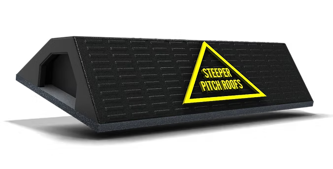 The Pitch Hopper® provides a temporary working surface on any pitch up to a 12/12. The steeper pitched side allows for a level surface on a 12/12, but can be used on any pitch all the way down to a 9/12.